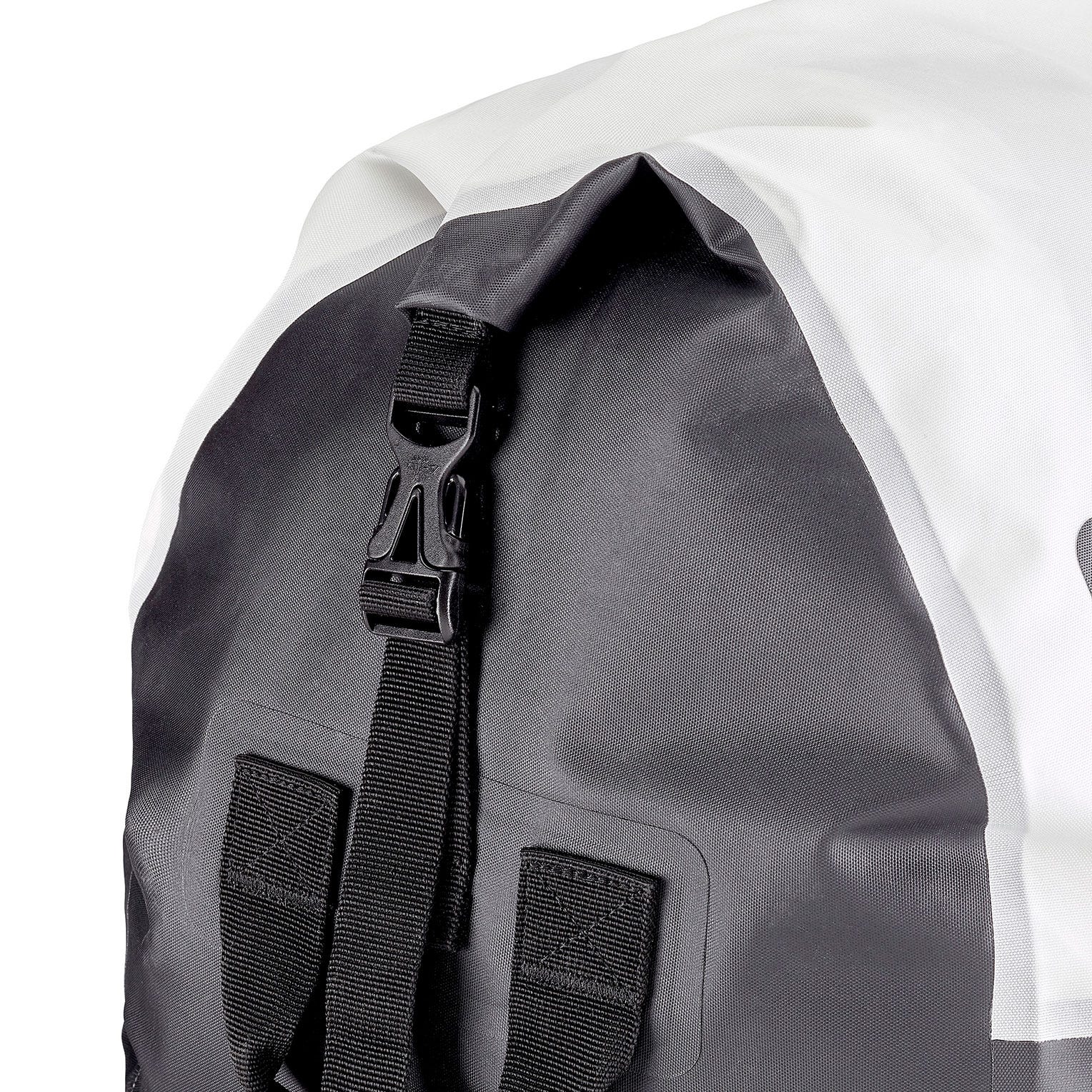 - Roll-top with non-catch closure and adjustable buckled straps